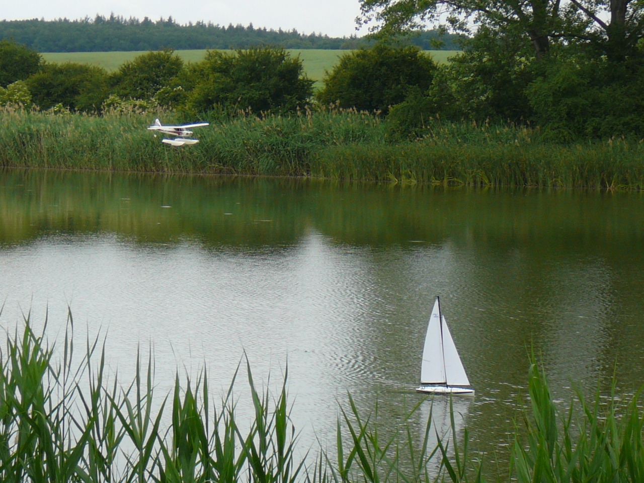 V poslední době jezdíme hlavně s plachetnicemi,dnes byl zpestřením Franta H. se svým hydroplánem a jeho rodinka pouštěla oba jeho rychlé čluny.